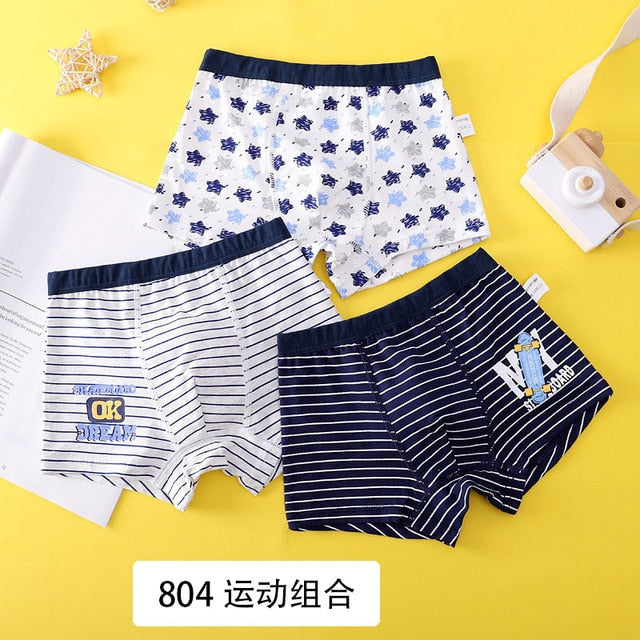3 Piece Kids Boys Underwear Cartoon Children's Shorts Panties For Baby Boy Toddler Boxers Stripes Teenagers Cotton Underpants